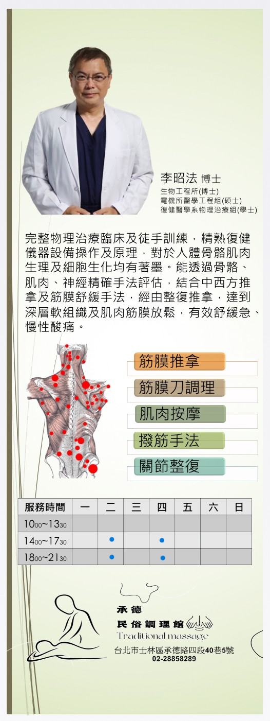 承德民俗調理館新進復健師李博士免費體驗活動